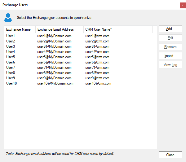 <Mailbox Name3>,<Exchange Email Address3>,<SugarCRM User ID3>