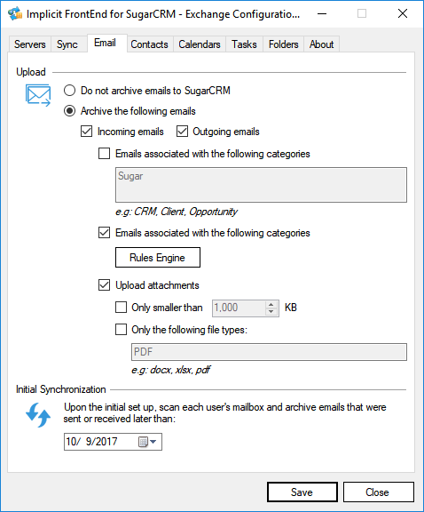 - Archive / Do not archive email to SugarCRM – Turn on/off email archive functionality