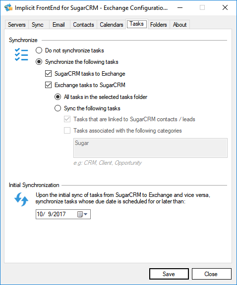 - Exchange tasks to SugarCRM – Synchronize tasks from Exchange to CRM
