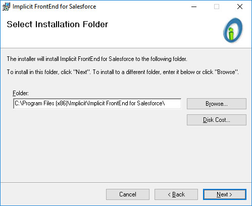 Files\Implicit\Implicit FrontEnd. Choose Browse to select a different folder.