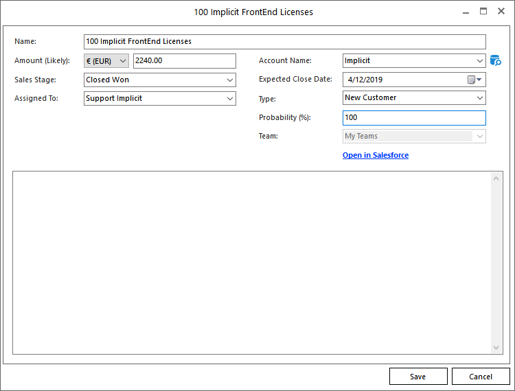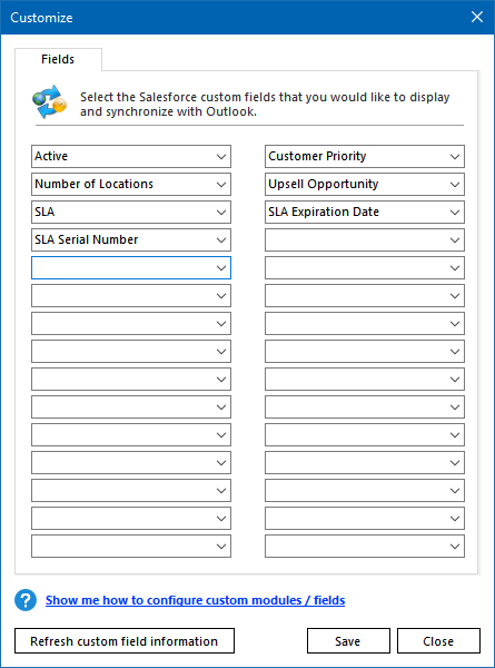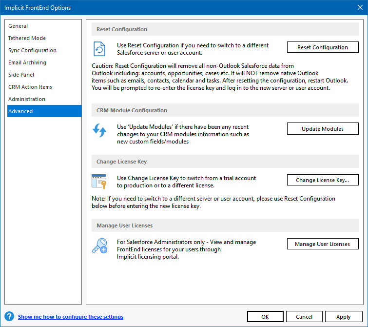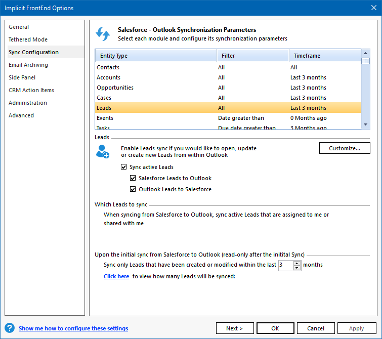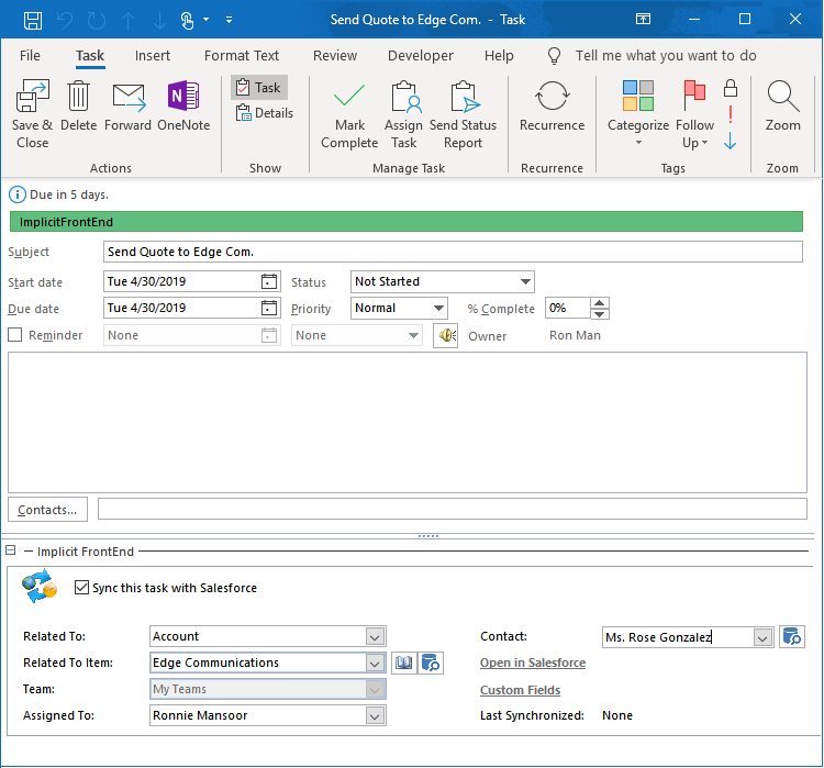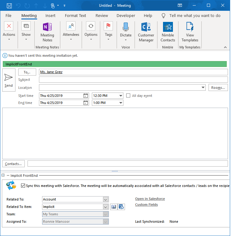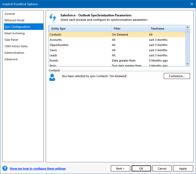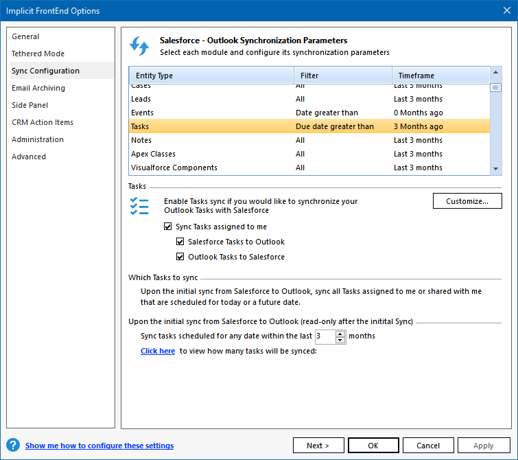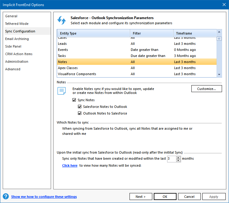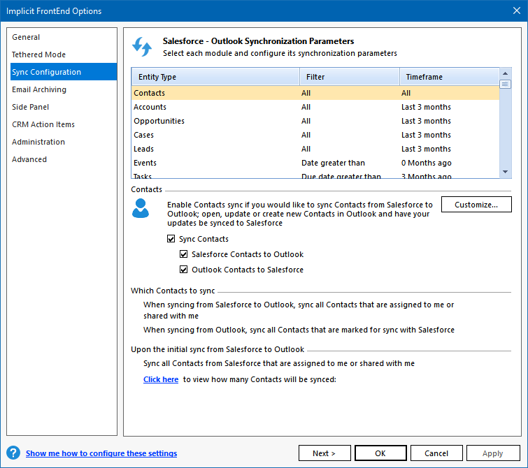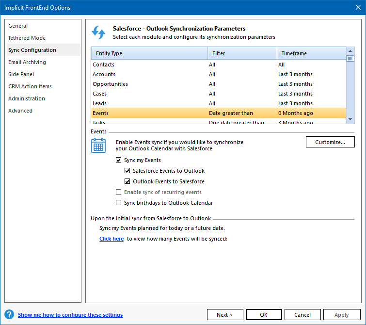 Salesforce to Outlook during the initial sync phase. When FrontEnd requires