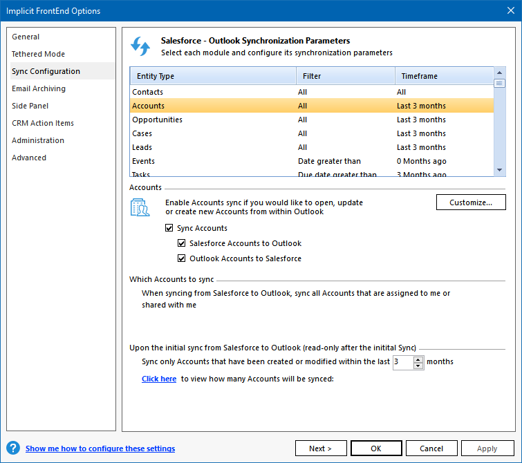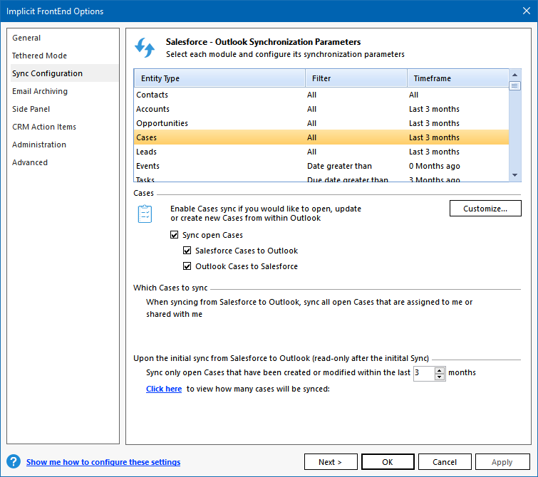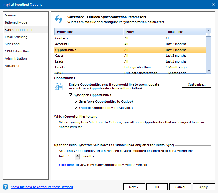 ‘Initial Sync’. These settings are used to determine which records should be