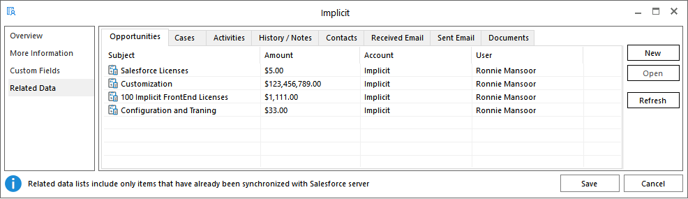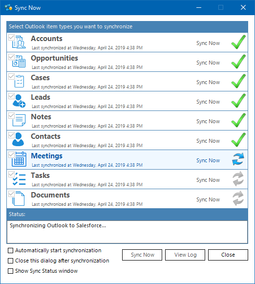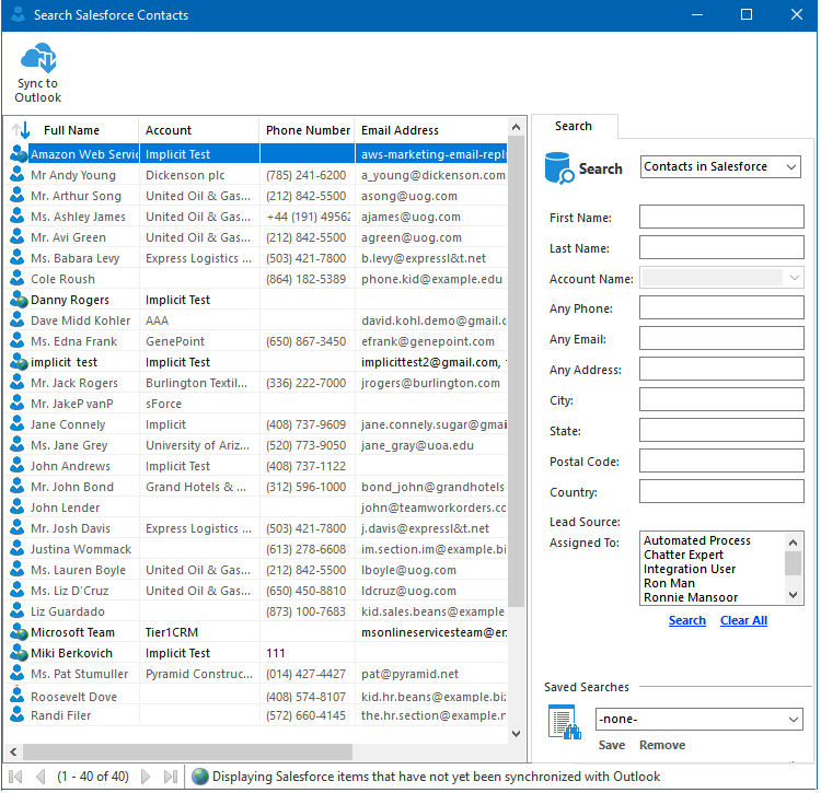 - Search for non-synced items on Salesforce