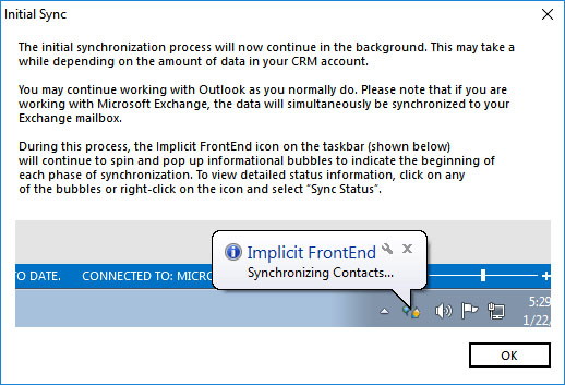 initially synced from SugarCRM to Outlook. Upon competition of the initial sync