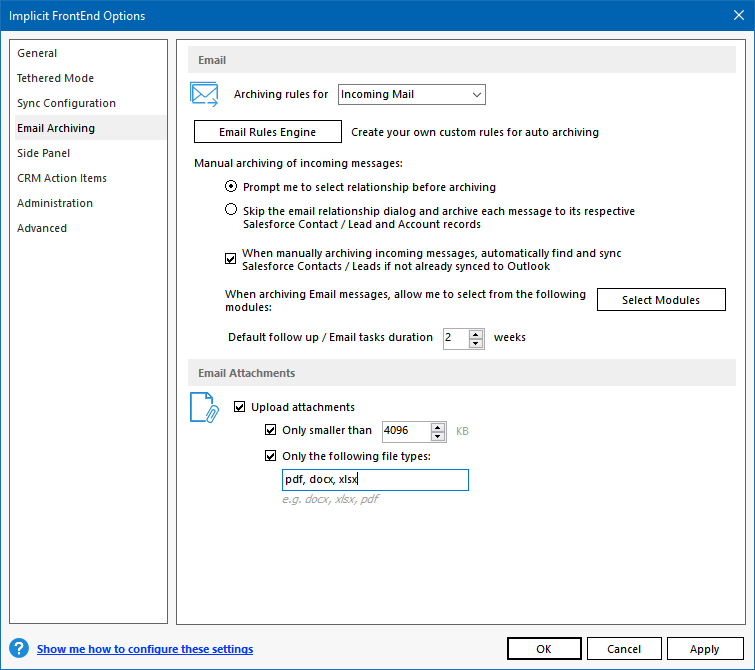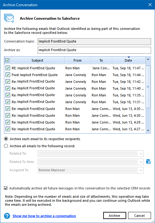 - Automatically sync contacts / leads upon archiving emails