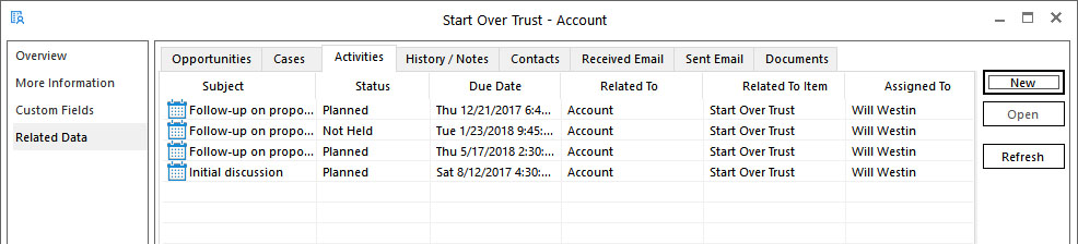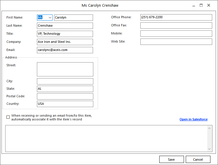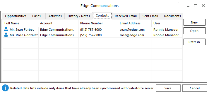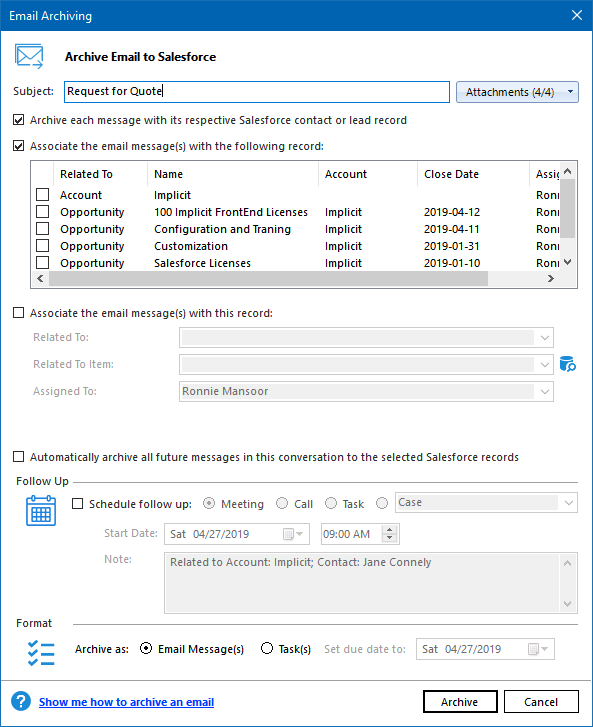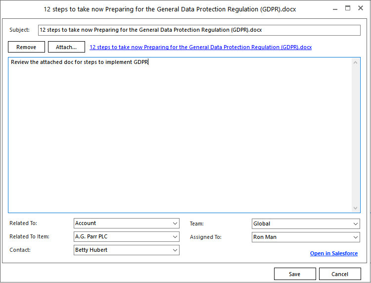 Salesforce to Outlook and how related records are accessed from within Outlook.
