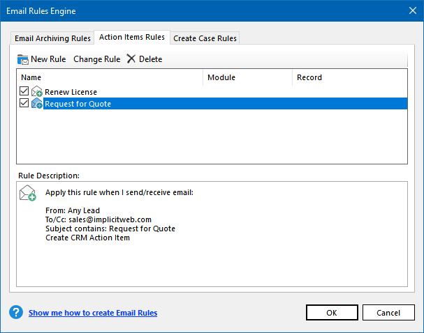 rules but still allows users to create their own rules. - CRM Action Items