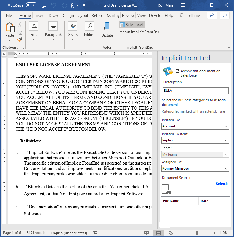 Installing the Implicit FrontEnd Outlook Add-In