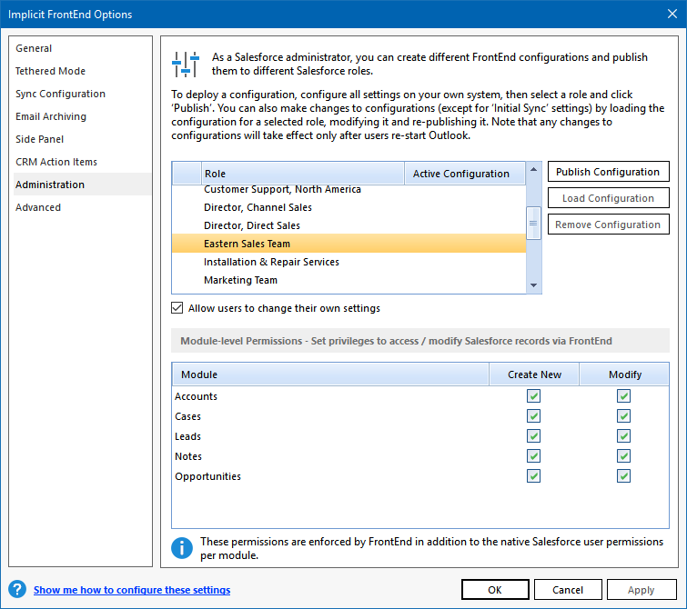 Once you publish a configuration for a specific role, each