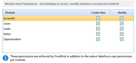 in addition to the native permissions you set per user on Salesforce that define