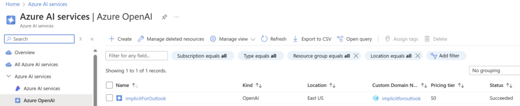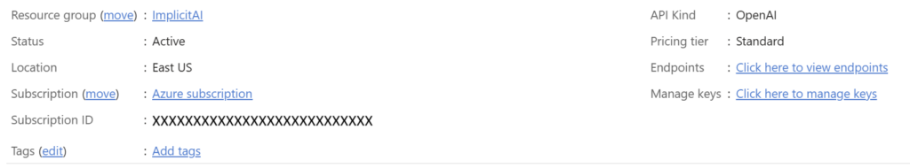 The deployment name you chose for the AI model (“ImplicitAIModel”)
