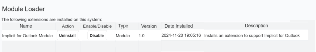 1. Start by installing the Implicit for Outlook Module on the CRM Server – This is required for the Implicit side panel to show up in Outlook or in a web browser.