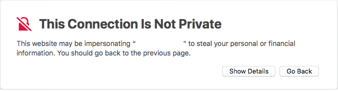 - Since your self-signed certificate is not yet trusted, you will receive the following warning: