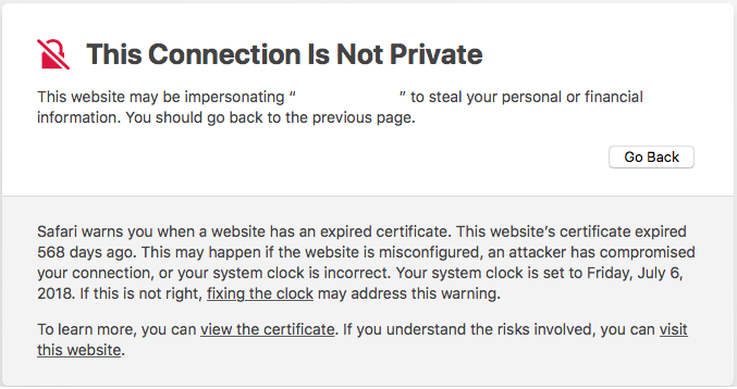 - Click ‘Show Details’. Safari will present a detailed description of the warning: